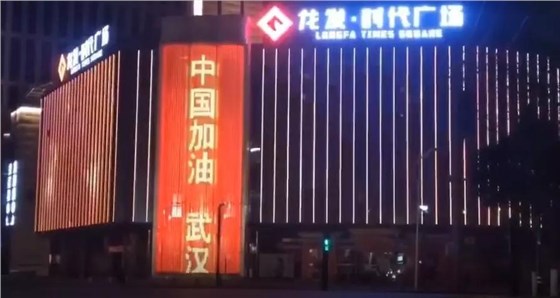2月10日晚,華燈初上,位于西安高陵的一站式購物中心——龍發(fā)時代廣場,一組應(yīng)援武漢的標(biāo)語點亮,“武漢加油 中國加油”滾動播出,不僅點亮夜空,更點燃西安廣大市民共同戰(zhàn)勝疫情的信心。