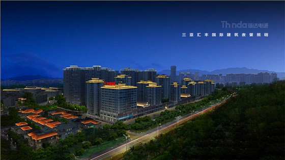 三亞匯豐國際夜景照明設計方案突出了匯豐國際建筑本身的特點,而且燈光的表現手法也非常獨特,為了營造出不同時段的夜景照明效果,經過信達電通照明設計師的前期現場勘查和與業主的溝通,設計了平日模式-節能模式-深夜模式等不同時段夜景照明模式設,以供其使用。